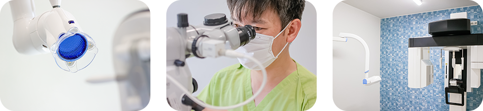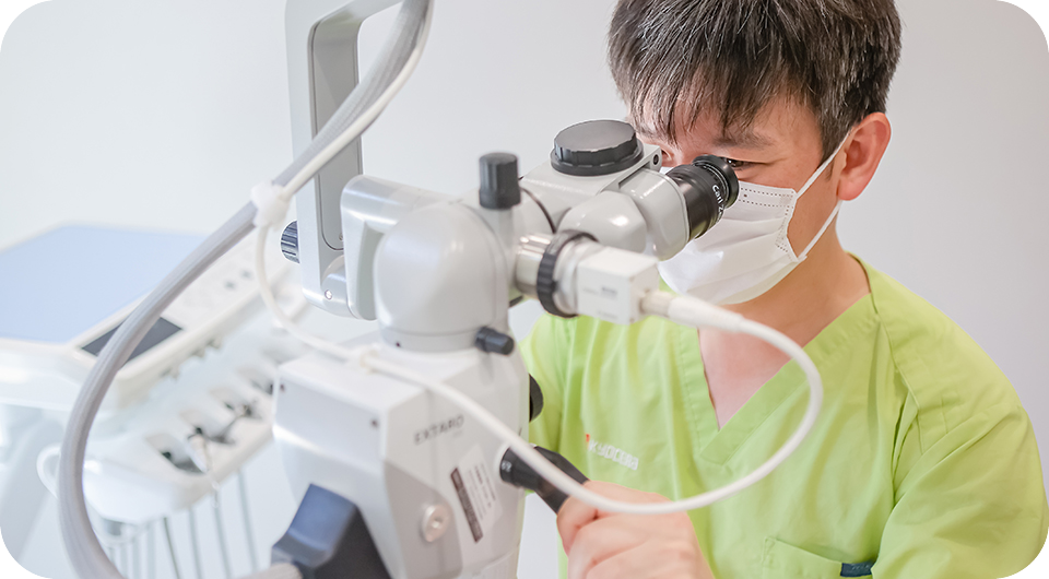 活用し、数倍にまで拡大し、補綴物(かぶせ物)の精度を高め、細菌の侵入を可及的に予防、歯内療法(根の治療)では、肉眼では発見できない根管や歯の破折を発見することで、治療成功率を高めることができます。