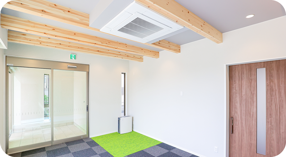 - ■ 喚起用窓と空気清浄機で清潔な環境